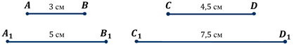 (2 балла)Пропорциональны ли отрезки АВ и СD отрезкам А1В1 и С1D1?